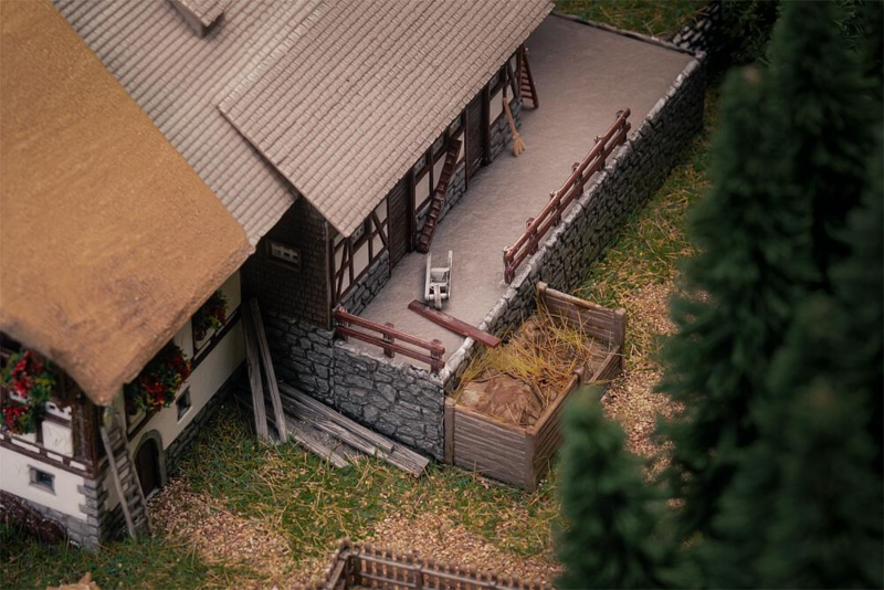 OverzichtTer gelegenheid van ons 80-jarig jubileum staat onze thuisregio - het Zwarte Woud - centraal in onze modelbouwwereld. Wat ons altijd heeft geïnspireerd, zal een jaar lang bijzonder zichtbaar zijn: de modelbouwkunst, geworteld in het Zwarte Woud! Het herkenningspunt uit de regio: een statige boerderij uit het Zwarte Woud met warm vakwerk, bakstenen kelder, hoge oprit en rieten en schindeldak. Omheiningen en karren zijn inbegrepen om het buitenterrein aan te passen. Twee dansende figuren in klederdracht brengen het erf en de modelwereld tot leven!