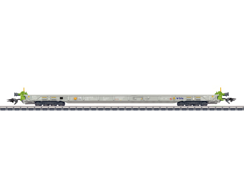 Model: Met metalen opbouw. Met twee zwenkbare en afneembare bufferbalken. Met keggen om wielvoertuigen vast te zetten. een speciale koppeling voor lagevloer wagens en speciale kortkoppelingen om te koppelen met wagens met normale koppeling worden meegeleverd. Ook koppelbaar met wagens met een bufferhoogte volgens NEM. Lengte over de buffers 23,2 cm.