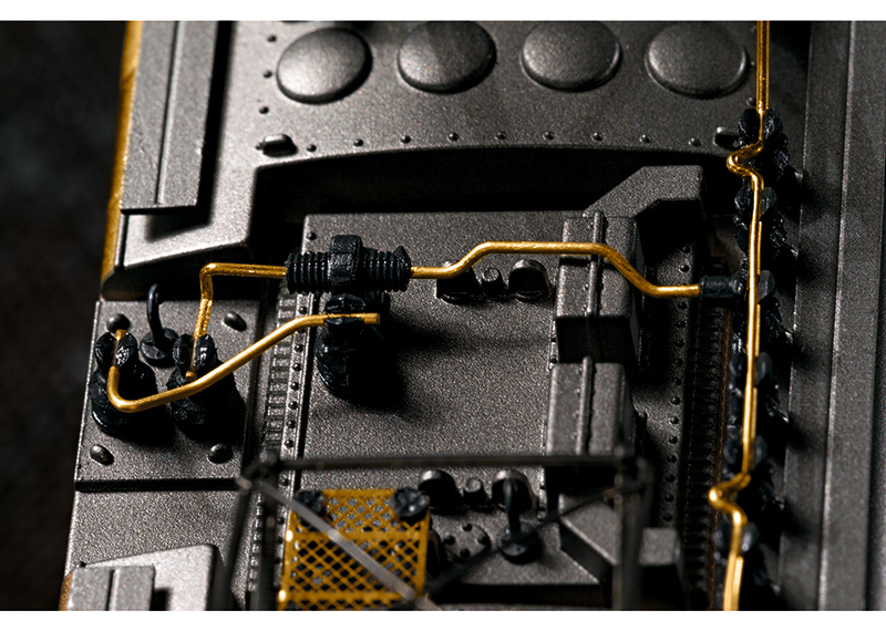 • Locbordessen, middelste locdeel, wielen, stangdelen en diverse andere delen van met 24 karaat goud verguld metaal.