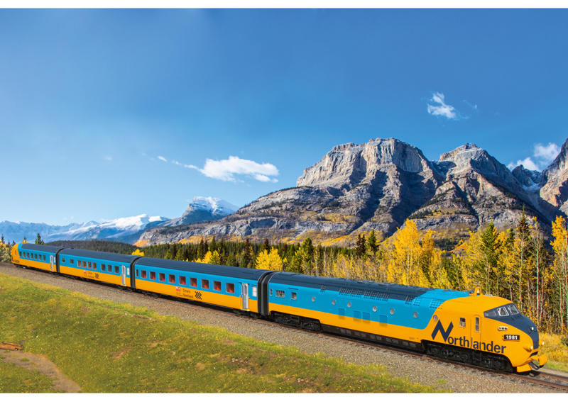 OverzichtVoorbeeld: Diesel treinstel 'Northlander' van de Ontario Northland Railway (ONR), Canada. (Voormalig diesel treinstel RAm TEE). vierdelig stel in de kleuren hemelsblauw en geel. 1 Motorrijtuig, 1 coupérijtuig, 1 restauratierijtuig, 1 rijtuig met stuurstand. Dieseltreinstel nummer 1981. Model in de uitvoering van de jaren ’80.