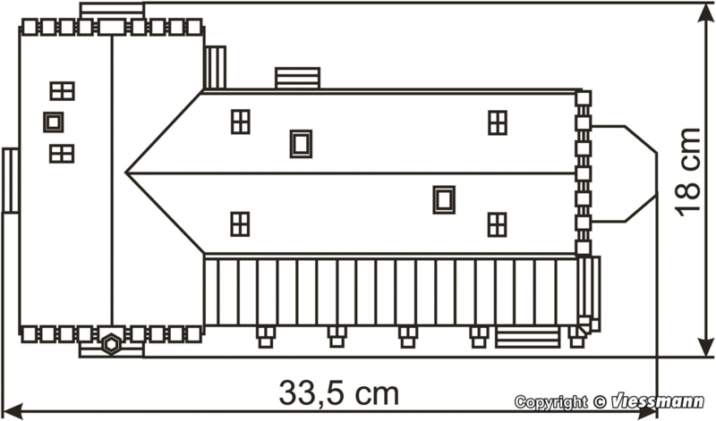 Tot dit idyllisch gelegen kloostercomplex behoren de kleine begraafplaats met een kruisbeeld, graven en banken, evenals de omringende kloostermuur met poorten, bloemenvlokken en gebladerte. Afmetingen: zonder wand L 33,5 x B 18 x H 19,5 cm / wand L 222 x B 0,2 x H 5 cm.