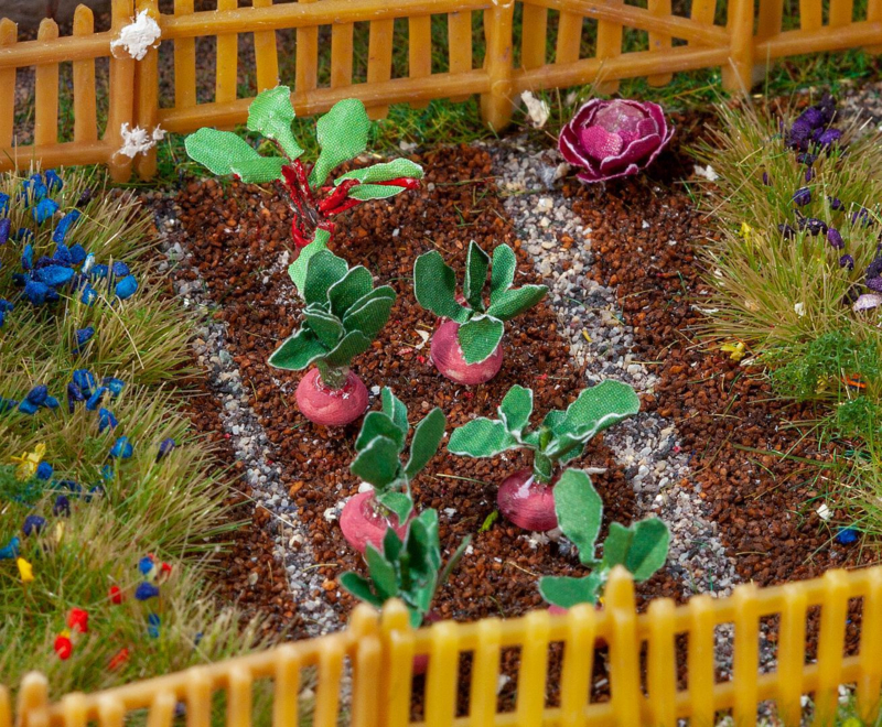 Decoratieve mini's zijn kant-en-klare kleine velden met verschillende planten. Ze worden eenvoudig uit de verpakking gehaald en in het modellandschap geplakt.